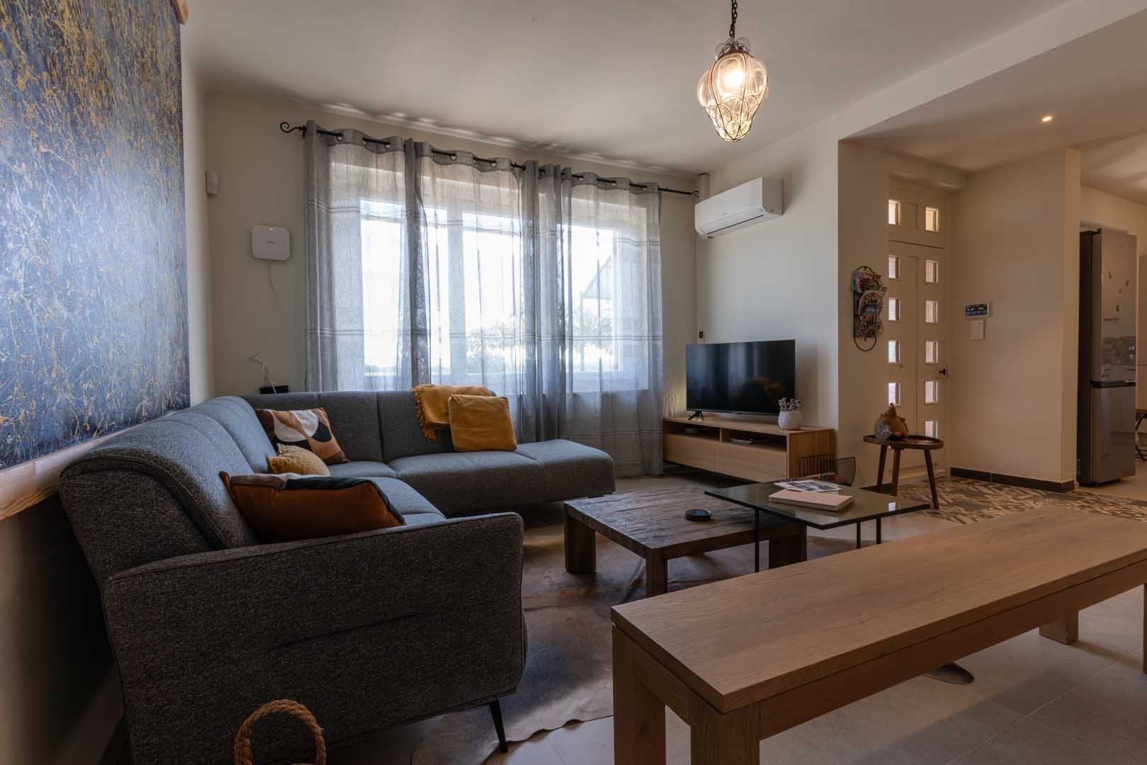 - A charming indoor terrace shaded by coconut fiber cloth