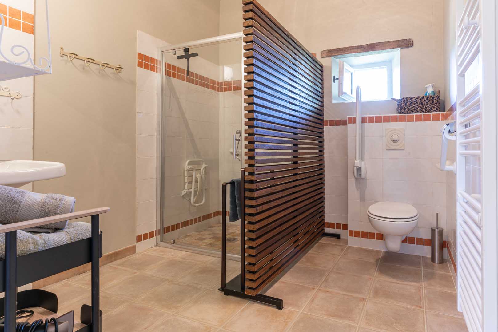 Douche et lavabo (adaptés aux personnes handicapées